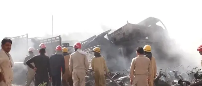 VIDEO | Fire engulfs over a dozen vehicles at Wazirabad Police Training Centre in Delhi. More details awaited.