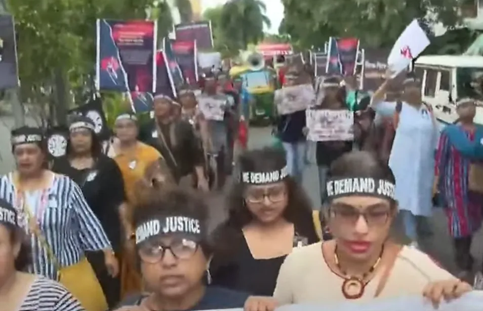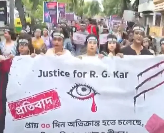 সূত্র মারফত জানা গিয়েছে যে, আজ সল্টলেকের ৫ নম্বর জলের ট্যাঙ্কের কাছ থেকে এক প্রতিবাদ মিছিল শুরু হয়। প্রতিবাদী মহিলারা মাথায় কালো ফেট্টি বেঁধে বিচারের দাবীতে পথে নেমেছেন। তাদের একটাই দাবী ' বিচার চাই। '