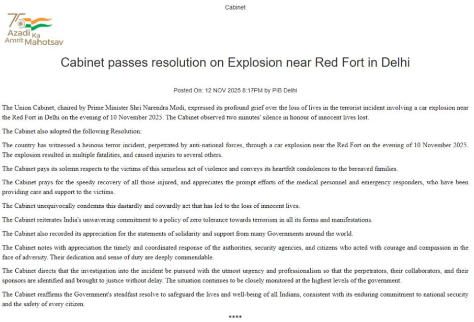 Govt of India terms the Delhi blast a "terrorist incident" by "anti-national forces" https://t.co/dQ3XyG16afpic.twitter.com/d3GQgsy2ze