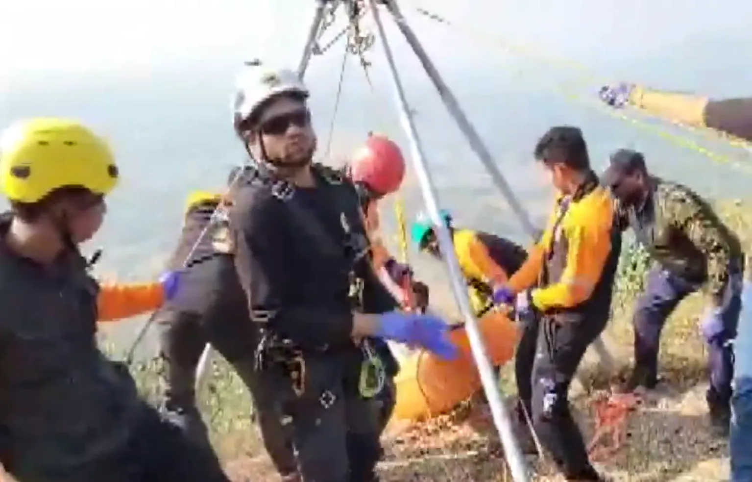 #WATCH | Maharashtra | Body of one tourist retrieved, five people feared dead, after a car plunged into a deep gorge at Tamhini Ghat in Raigad on the intervening night of 17th & 18th November
