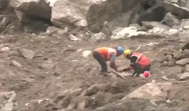 #WATCH | J&K: Controlled blasting done during the search and rescue operation by Indian Army, NDRF, SDRF, Police and local administration in flash flood-hit Chasoti village in Kishtwar district.