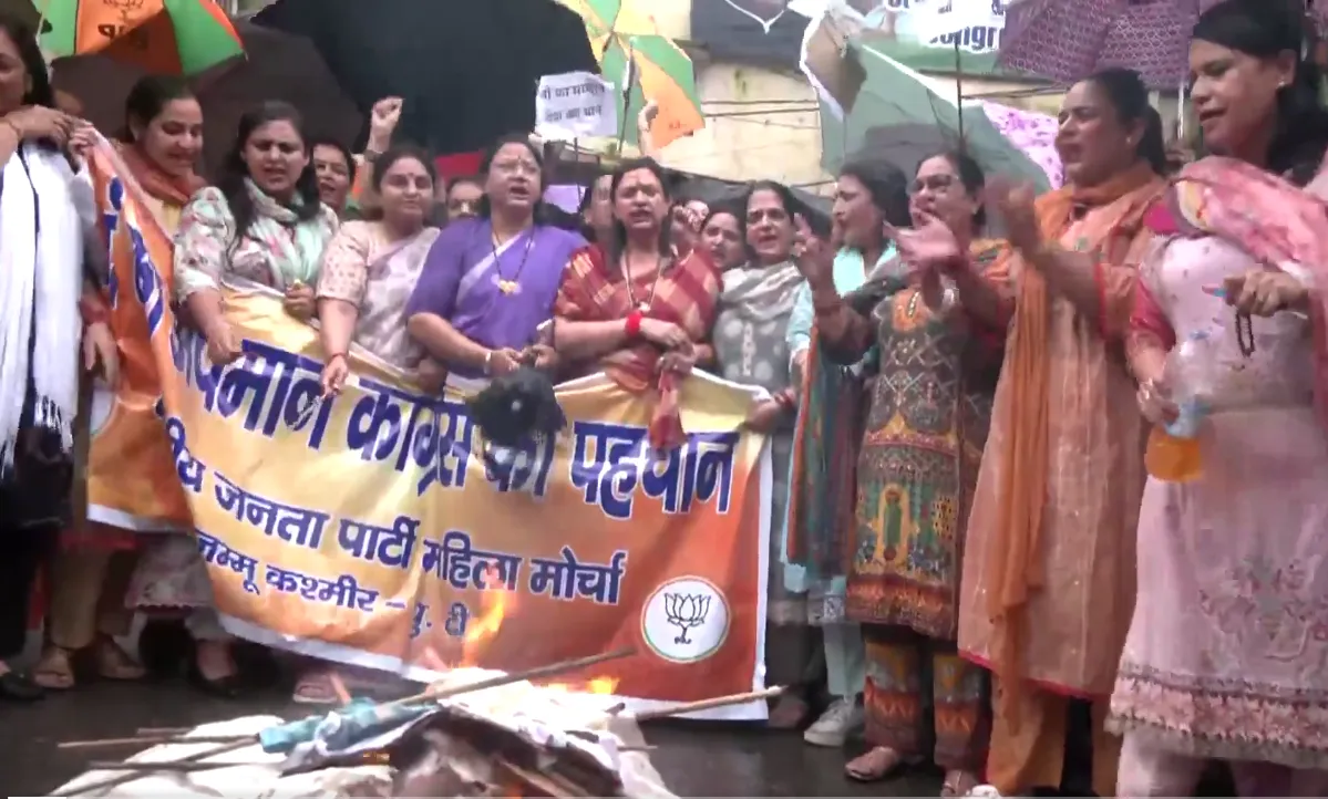#WATCH | J&K: BJP Mahila Morcha protests in Jammu over derogatory remarks against PM Narendra Modi and his late mother at a Mahagathbandhan event in Darbhanga, Bihar. pic.twitter.com/WFuaTovUry