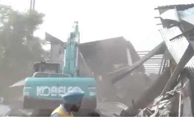 #WATCH | Chandigarh: An unauthorised furniture market in Sectors 53 and 54 being demolished in the presence of local administration and Police.
