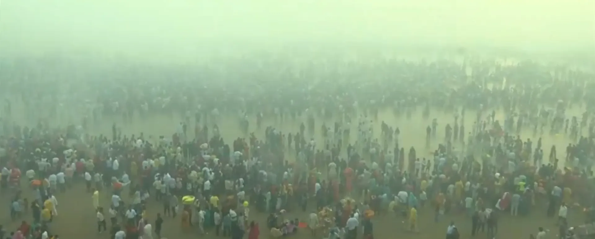 #WATCH | Bihar: Amid a thin layer of fog, devotees thronged the ghat in Gaya Ji to offer 'Usha Arghya' on the last day of #ChhathPuja. pic.twitter.com/bRXMAiB9Hn