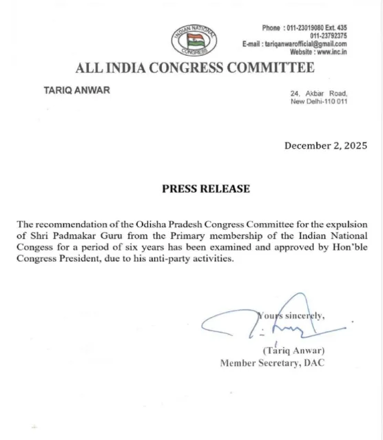 Congress expels the party's Odisha unit leader, Padmakar Guru, for a period of 6 years due to his "anti-party activities." pic.twitter.com/JMSigx6W78