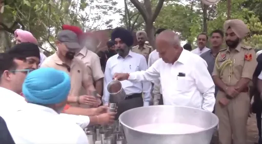 #WATCH | Punjab Governor Banwari Lal Purohit distributes chabeel outside the Governor House in Chandigarh. pic.twitter.com/h8FKQqIiDw