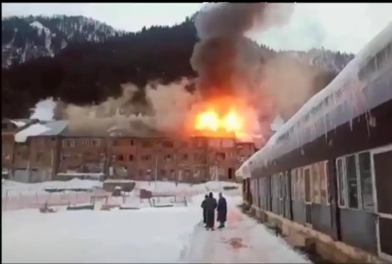 #WATCH | Ganderbal, J&K: Fire breaks out at the main market in Sonamarg. Further details awaited. pic.twitter.com/osgS213QhY