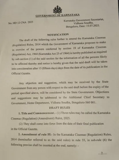 নিজস্ব সংবাদদাতা: কর্ণাটক সরকার রাজ্যজুড়ে সিনেমা হল ও মাল্টিপ্লেক্সে টিকিটের দামে সর্বোচ্চ সীমা বেঁধে দিল। নতুন নির্দেশ অনুযায়ী, কোনও সিনেমা টিকিটের মূল্য ২০০ টাকার বেশি হতে পারবে না, যার মধ্যে বিনোদন করও অন্তর্ভুক্ত থাকবে। সরকারি বিজ্ঞপ্তিতে জানানো হয়েছে, এই সিদ্ধান্ত সাধারণ মানুষের নাগালের মধ্যে বিনোদনের খরচ রাখতে নেওয়া হয়েছে। নির্দেশটি রাজ্যের সব প্রেক্ষাগৃহেই প্রযোজ্য হবে এবং তা অবিলম্বে কার্যকর হবে। মাল্টিপ্লেক্স মালিকদের একাংশ এই সিদ্ধান্তে অসন্তোষ জানালেও, দর্শকদের মধ্যে স্বস্তি দেখা গেছে।