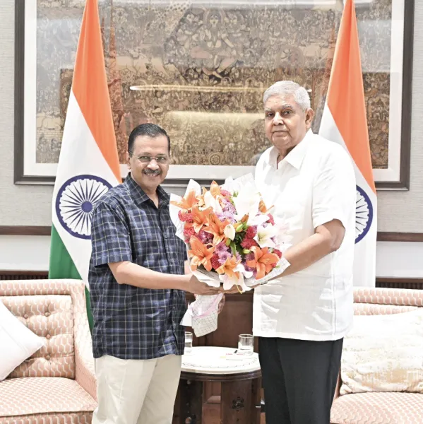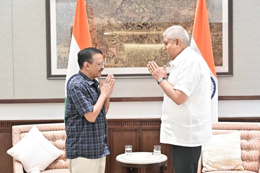 AAP national convener and former Delhi CM Arvind Kejriwal along with Floor Leader of AAP in the Rajya Sabha, Sanjay Singh called on Vice-President Jagdeep Dhankhar at the Vice-President’s Enclave today.