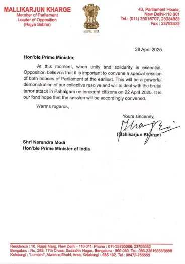 Congress President and Leader of the Opposition in the Rajya Sabha, Mallikarjun Kharge has written to Prime Minister Narendra Modi requesting that a special session of both Houses of Parliament be convened at the earliest to demonstrate a collective will to deal with the… pic.twitter.com/3p5ZqagsVb