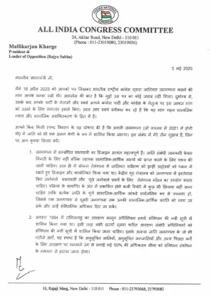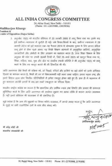Congress President Mallikarjun Kharge writes to PM Modi, suggesting three points to be considered regarding the caste census.