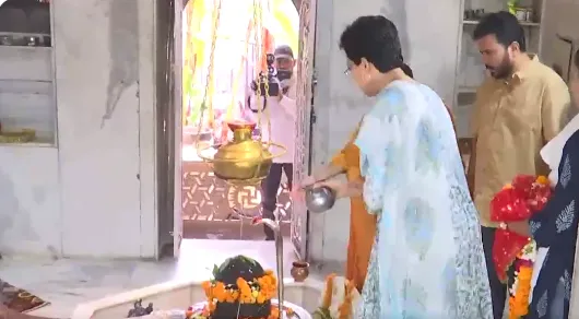 #WATCH | Delhi Water Minister and AAP leader Atishi offered prayers at Shiv Mandir at Bhogal earlier this morning ahead of the second day of her indefinite fast over the Delhi water crisis. pic.twitter.com/7xeaujclwZ