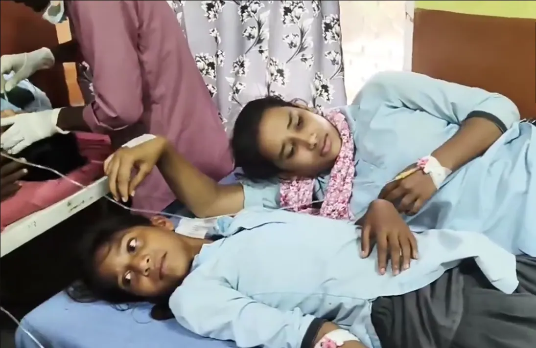 #WATCH | Dausa, Rajasthan: More than 50 students have been admitted to the hospital due to food poisoning after consuming food at a Government school.