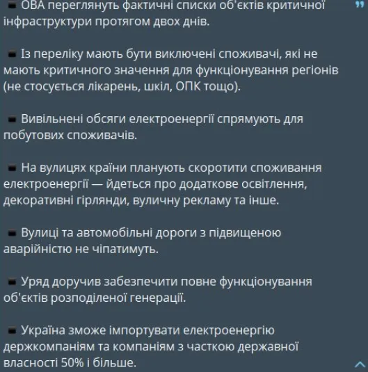 ⚡️The government has adopted a series of decisions to improve the situation with providing electricity to people, — Prime Minister Svyrydenko.