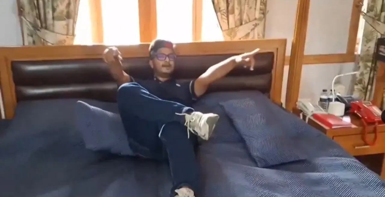 যেখানে দেখা যাচ্ছে, শেখ হাসিনার বিছানায় জুতো পরে পা তুলে গান গাইছেন এক যুবক। কেউ আবার রাস্তায় বার করে নিয়ে এসেছেন তার লেপ-তোষক।