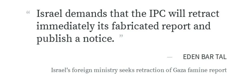 #UPDATE Israel has called on UN-backed hunger monitor the Integrated Food Security Phase Classification Initiative (IPC) to immediately retract a report which determined that famine was present in parts of Gaza. pic.twitter.com/ip2135QXYZ