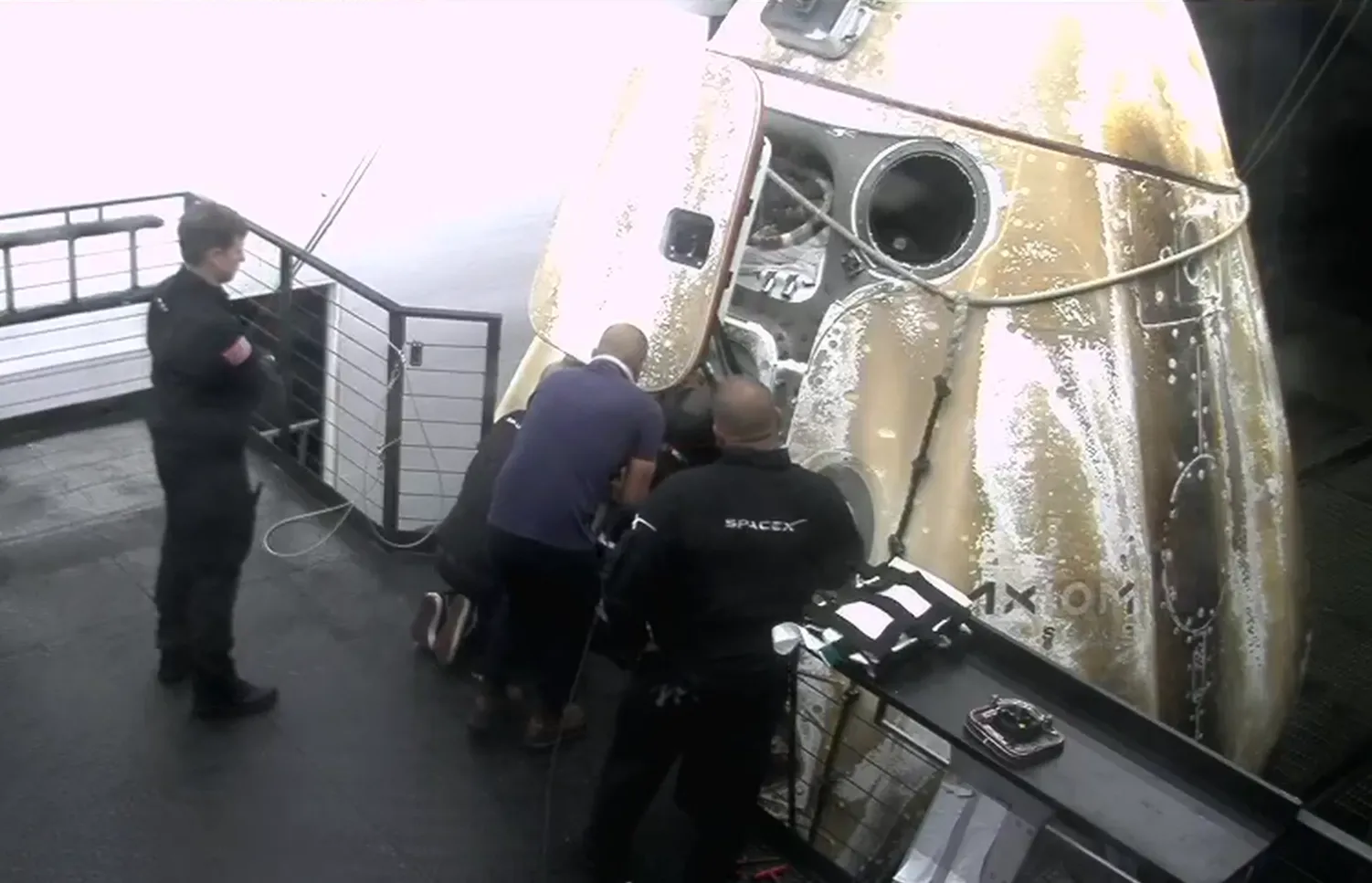 এবার ছবির মাধ্যমে দেখুন মহাকাশযান ড্রাগন থেকে মহাকাশচারীদের বেরিয়ে আসার প্রক্রিয়া -