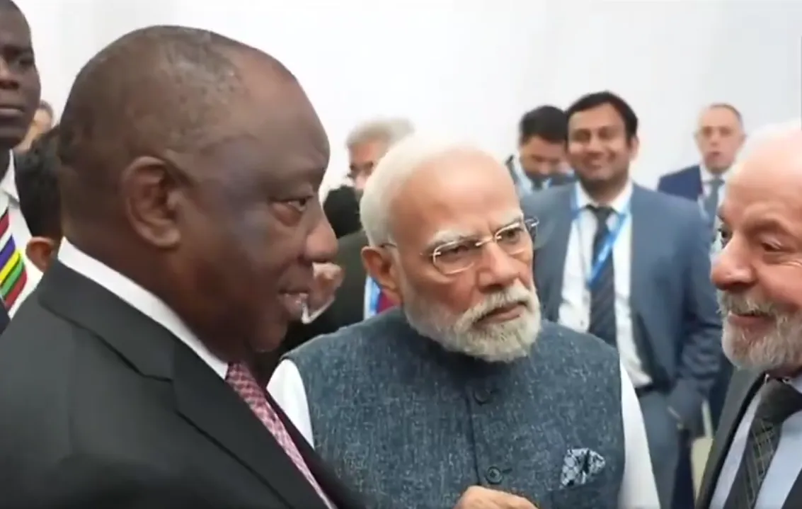 নিজস্ব সংবাদদাতা: G-20 শীর্ষ সম্মেলনের মধ্যে অনুষ্ঠিত India-Brazil-South Africa (IBSA) নেতাদের বৈঠকের পর তিন দেশের শীর্ষ নেতারা—ভারতের প্রধানমন্ত্রী নরেন্দ্র মোদি, ব্রাজিলের প্রেসিডেন্ট লুইজ ইনাসিও লুলা দা সিলভা, এবং দক্ষিণ আফ্রিকার প্রেসিডেন্ট সিরিল রামাফোসা—একত্রে আলোচনা করেন।