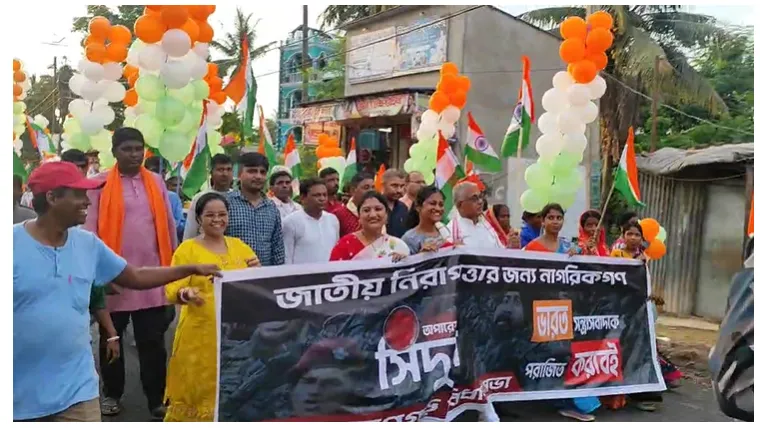 নিজস্ব সংবাদদাতা: বেলদাতে বিজেপির তিরঙ্গা যাত্রায় অংশ নিলেন বিজেপি নেতা দিলীপ ঘোষ। পশ্চিম মেদিনীপুরের নারায়ণগড়ের বেলদাতে রবিবার বিকেলে অপারেশন সিন্দুরকে শ্রদ্ধা জানাতে তিরঙ্গা যাত্রা করে বিজেপি। এদিন উক্ত কর্মসূচিতে যোগ দেন বিজেপির প্রাক্তন সাংসদ দিলীপ ঘোষ। তিরঙ্গা যাত্রা বেলদা কালীমন্দির থেকে শুরু হয়ে পুরো বেলদা শহর পরিক্রমা করে শেষ হয়।