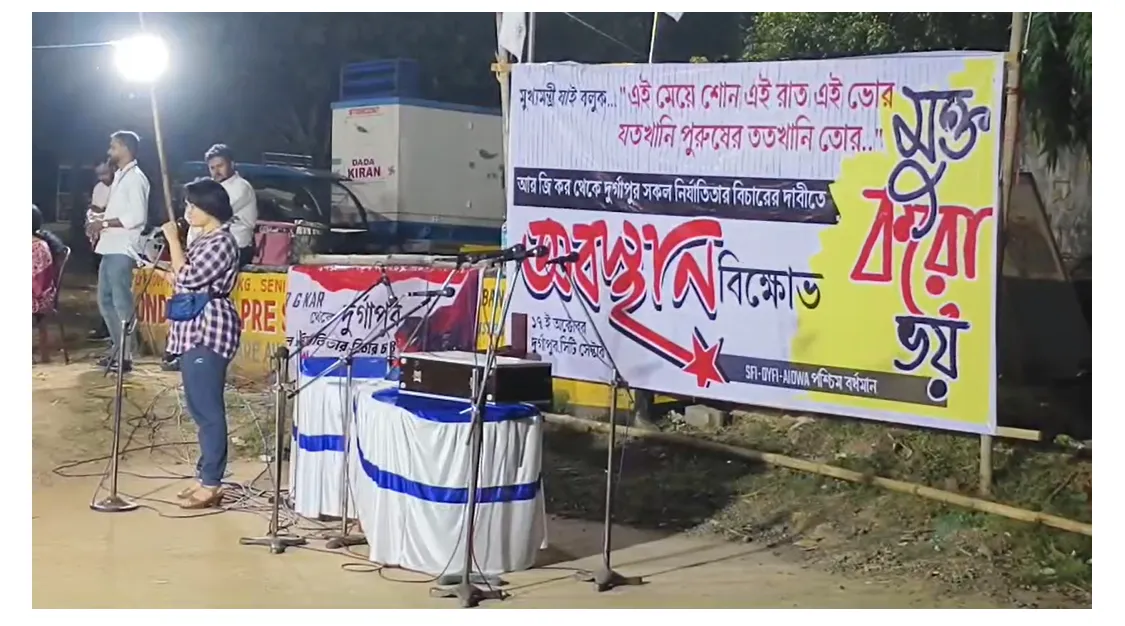 নিজস্ব সংবাদদাতা: দুর্গাপুরে আইকিউসিটি কান্ডের প্রতিবাদে চতুরঙ্গ মাঠে শুক্রবার সন্ধ্যায় প্রতিবাদ কর্মসূচি অনুষ্ঠিত হয়। কর্মসূচিটি আয়োজিত হয় এসএফআই, ডিওয়াইএফআই সহ বিভিন্ন বামপন্থী ছাত্র ও যুব সংগঠনের ডাকে। কর্মসূচিতে অংশগ্রহণকারীরা প্রধানত দুর্গাপুর কাণ্ডের প্রতিবাদে ‘মুক্ত করো ভয়’ কর্মসূচির মাধ্যমে প্রতিবাদ চলে। সেখানে শোনা যায় প্রতিবাদমূলক গান ও কবিতা, এছাড়াও বক্তব্য রাখেন নেতৃত্বরা। বক্তারা রাজ্য ও কেন্দ্রীয় সরকারের বিরুদ্ধে সমালোচনামূলক মন্তব্য করেন এবং মেয়েদের নিরাপত্তা নিশ্চিত করার দাবিও তুলেন। এছাড়াও কর্মসূচিতে স্থানীয় শিক্ষার্থী ও সাধারণ জনতাও অংশ নেন। তারা সরকারের কাছে দ্রুত ব্যবস্থা গ্রহণ এবং অভিযুক্তদের দৃষ্টান্তমূলক শাস্তির দাবিতে স্লোগান দেন।