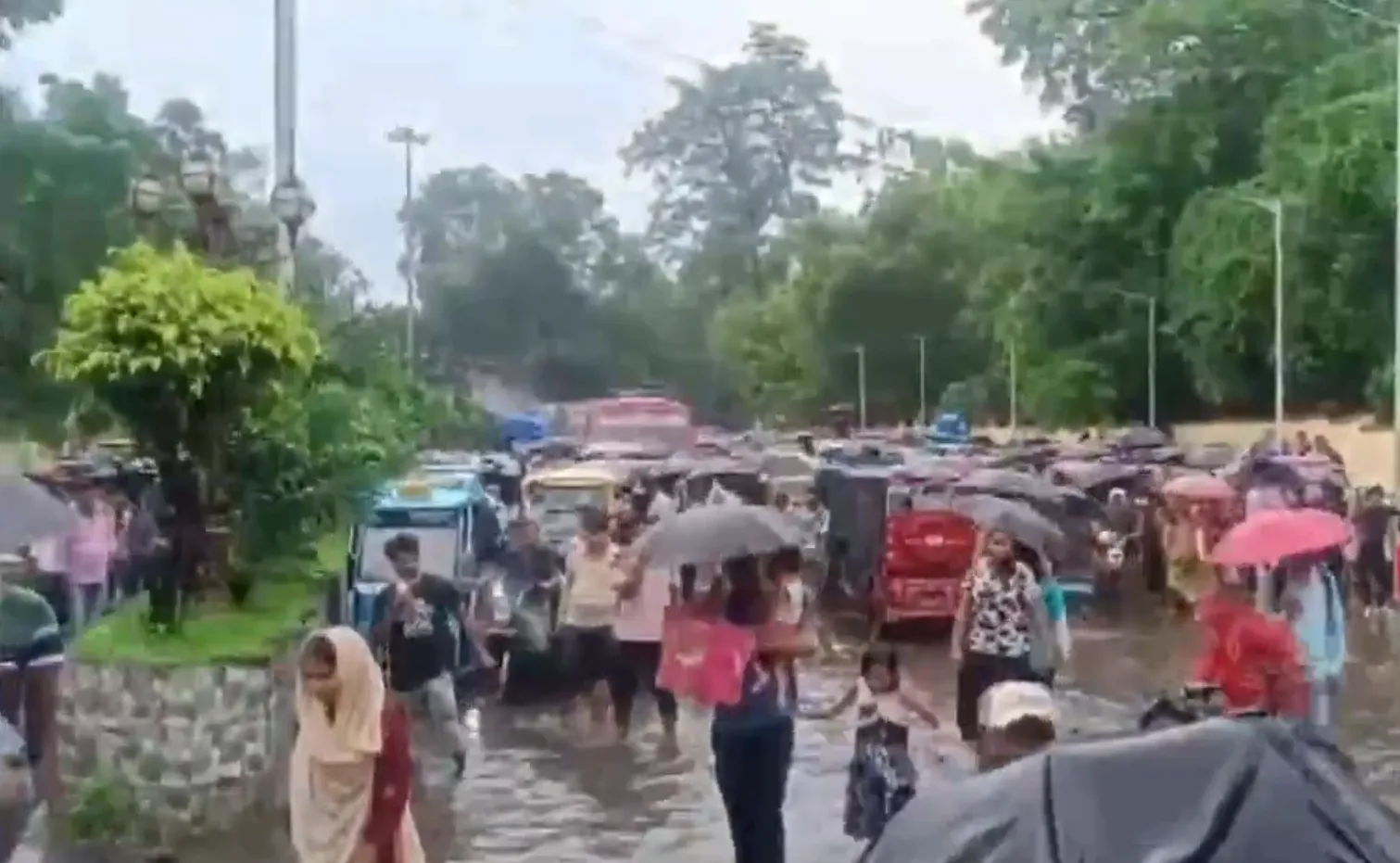 #WATCH | West Bengal: Severe waterlogging witnessed in parts of Asansol due to heavy rainfall in the region pic.twitter.com/6grjLG2IXR