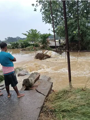 নিজস্ব প্রতিনিধি: চন্দ্রকোনা ১ নম্বর ব্লকের ভান্ডারচন্ডী এলাকায় কেঠিয়া নদীর উপর থাকা কংক্রিট ব্রীজের সংযুক্ত রাস্তা জলের তোড়ে ভেঙে গিয়েছে।