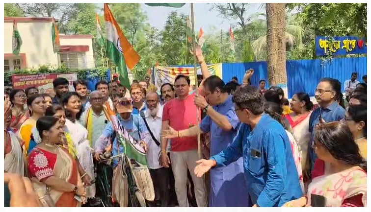 এদিন সাইকেল নিয়ে দিঘার উদ্দেশ্যে এগিয়ে যান তৃণমূল কর্মী স্বপন কুমার ঘোষ। যাত্রাপথে দেবেন সম্প্রীতির বার্তা, এমনটাই জানিয়েছেন তিনি। অক্ষয় তৃতীয়ার দিন দিঘায় জগন্নাথ মন্দিরের প্রাণ প্রতিষ্ঠা করবেন রাজ্যের মুখ্যমন্ত্রী মমতা বন্দ্যোপাধ্যায়। জগন্নাথের প্রাণ প্রতিষ্ঠায় যোগ দেবেন স্বপন কুমার ঘোষ। এদিন তাঁকে শুভেচ্ছা জানাতে উপস্থিত ছিলেন জেলা তৃণমূলের সভানেত্রী অসীমা চক্রবর্তী এবং তৃণমূল নেতা পঙ্কজ রায় সরকার।