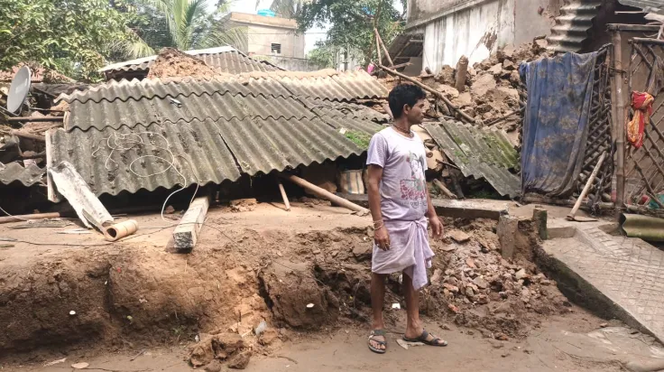নিজস্ব প্রতিনিধি: একদিনের ভারী বৃষ্টিতেই হুড়মুড়িয়ে ভেঙে পড়লো দোতলা মাটির বাড়ি, অল্পের জন্য প্রানে বাঁচলো পরিবারের সদস্যরা। গতকাল বিকেলের পর হঠাৎ করেই ব্যাপক বৃষ্টি শুরু হয় পশ্চিম মেদিনীপুর জেলার ডেবরায়। আর তার ফলেই রবিবার ভোরে ১ নং ভবানীপুর গ্রাম পঞ্চায়েতের পাটনা এলাকায় দোতালা মাটির বাড়ি হুড়মুড়িয়ে ভেঙে পড়লো। বাড়ি ভাঙবে বুঝতে পেরেই বাড়ির মধ্যে থাকা পরিবারের লোকজন দৌড়ে বেরিয়ে পরে বাড়ি থেকে। পুরো বাড়ির মধ্যে থাকা সমস্ত জিনিস নষ্ট হয়ে গিয়েছে। পাটনা এলাকার বাসিন্দা সুভাষ অধিকারীর বাড়ি মুহুর্তের মধ্যে ভেঙে গেলো, চিন্তায় পরিবার। প্রশাসনিক সহযোগিতার আবেদন করেছে পরিবার।